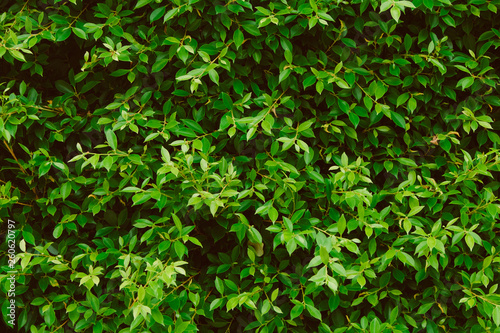 Obraz premium Green leaves wall background, plant on the wall