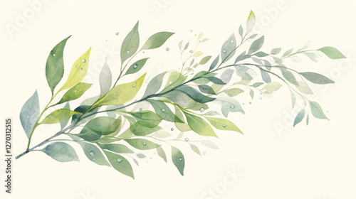 © Anciens, Fototapeta premium Green leaves watercolor hand-painted decorative elements