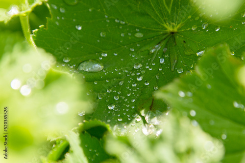 © Diana, Fototapeta premium green leaves with drops of water. close-up. macro photography. after the rain.