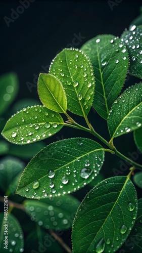 © razina01, Fototapeta premium green leaves with water drops