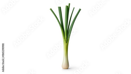 © TheWaterMeloonProjec, Obraz premium Green leek stalks isolated on white background, kitchen ingredient for nutritious meals, spring season