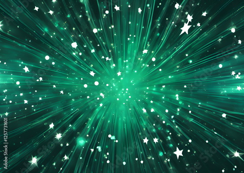 © Anastasiia, Fototapeta premium Green light burst with star particles.