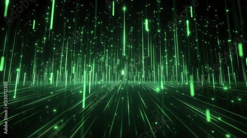 Fototapeta premium Green Light Rays Create Abstract Background of Digital Matrix