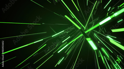 © sa-photo, Naklejka premium Green light streaks abstract digital background with dynamic glowing lines and futuristic energy beams