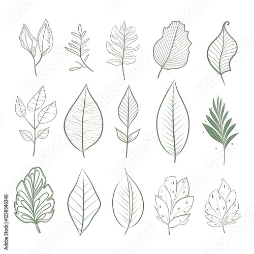 © Resi, Fototapeta premium Green line art leaves forming a beautiful pattern