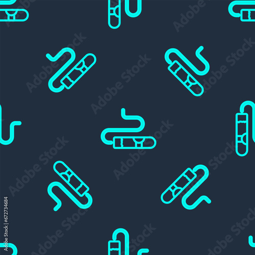 Obraz premium Green line Cigar icon isolated seamless pattern on blue background. Vector