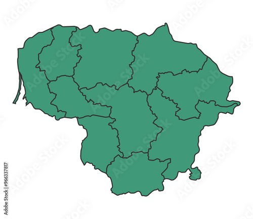© Jayartiez, Fototapeta premium Green Lithuania simple map with states border outline vector