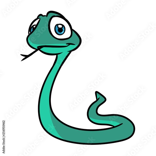 © efengai, Naklejka premium Green little snake cartoon illustration isolated image