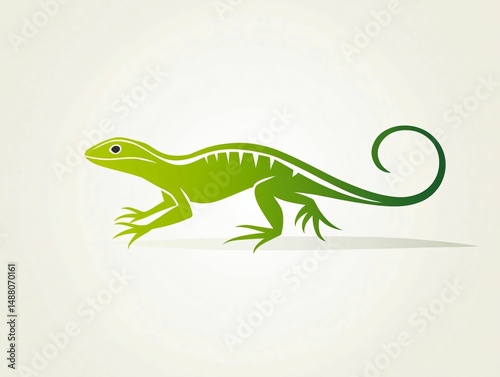 © Jeerawat, Naklejka premium Green Lizard Illustration with Stylized Design and Simple Background