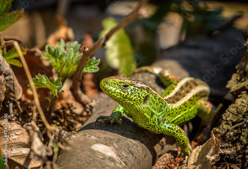 Fototapeta premium Green lizard in the forest