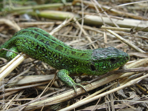 © Мария Пилипенко, Naklejka premium Green lizard in the natural environment