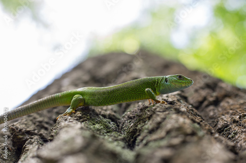 Fototapeta premium Green lizard in the wild.