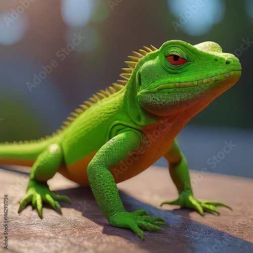 © Stefan Mijailovic, Fototapeta premium green lizard on a branch