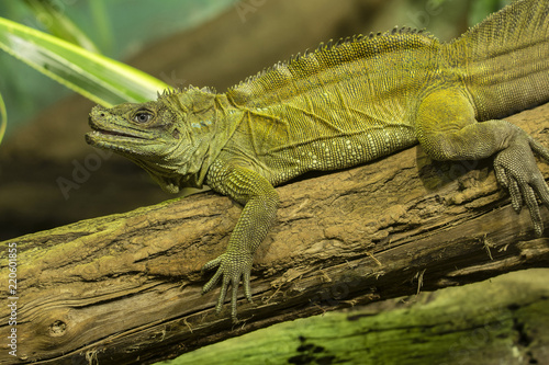 Naklejka premium Green lizard on a branch.