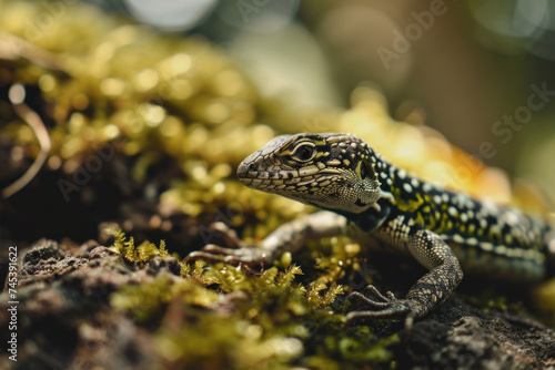 Naklejka premium green lizard on a branch