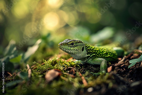 © paul, Naklejka premium green lizard on a branch