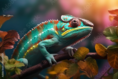 © Dzikrul Husnani, Obraz premium green lizard on a dark background, generative ai