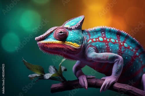 © Dzikrul Husnani, Fototapeta premium green lizard on a dark background, generative ai