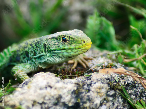 Naklejka premium green lizard on a rock