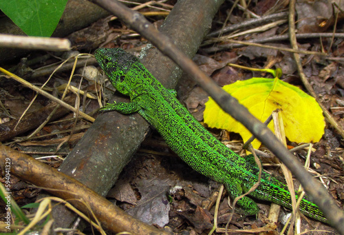 © Елена Климович, Fototapeta premium green lizard on a tree