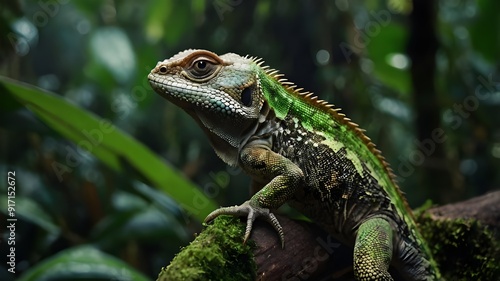 © Kamarullah, Obraz premium green lizard on a tree