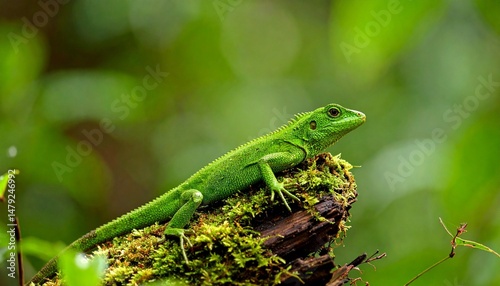 © Muji Creatives, Fototapeta premium green lizard on a tree branch