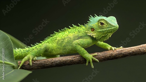 © reza, Obraz premium Green Lizard on Branch Closeup