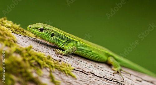 Fototapeta premium Green Lizard on Mossy Wood