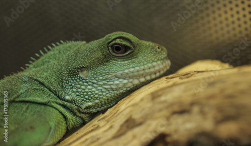 © agarianna, Fototapeta premium green lizard portrait - chinese water dragon