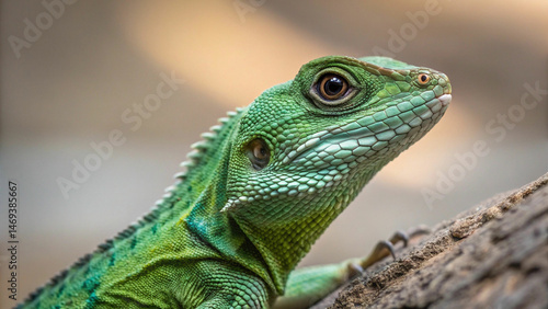 Fototapeta premium green lizard reptile close up detailed scales