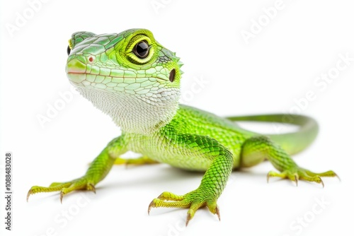 © jambulart, Obraz premium Green lizard with sharp claws on white background.