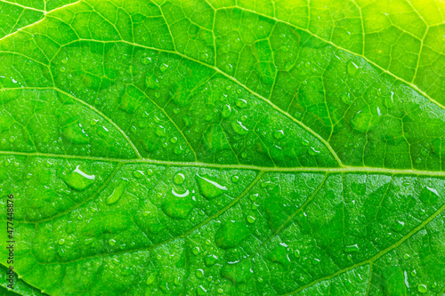 Obraz premium green macro leaf and water drop,Green leaf with drops of water