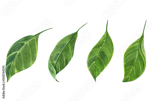 Obraz premium green magnolia leaves, set of elements, watercolor illustration for textiles,...