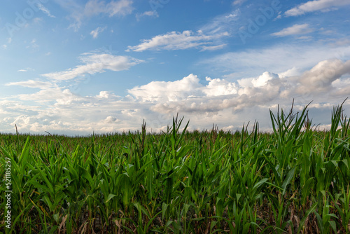 © Sergey Fedoskin, Obraz premium Green maize field under of dramatic clouds.