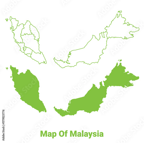 © Jayartiez, Fototapeta premium Green Malaysia map outline and flat vector illustration