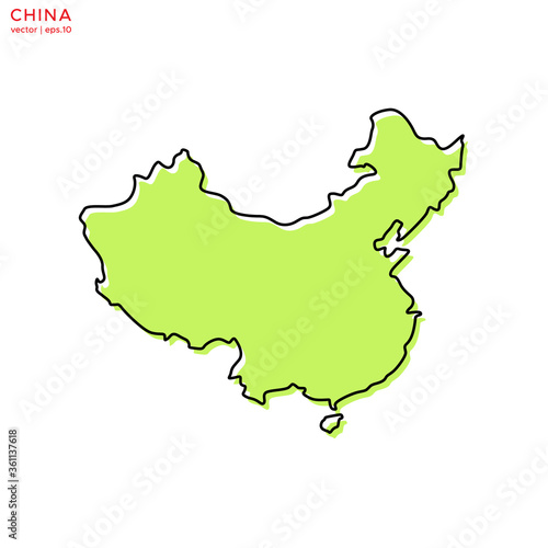Fototapeta premium Green Map of China with Outline Vector Design Template. Editable Stroke