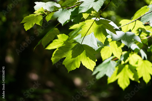 © Aneta, Fototapeta premium Green maple leaves in the sunshine