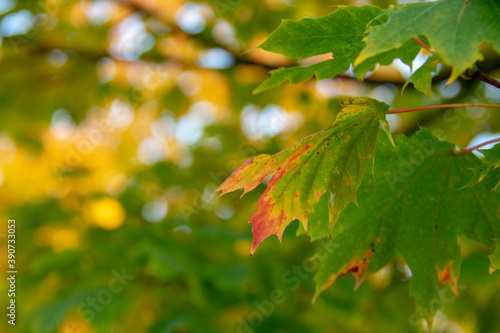Fototapeta premium Green Maple tree fall leaf closeup in Schoneberg Berlin Germany