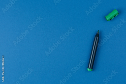 © alexxndr, Naklejka premium green marker on the blue table top view
