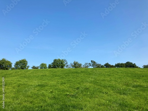 © liam, Fototapeta premium green meadow against blue sky