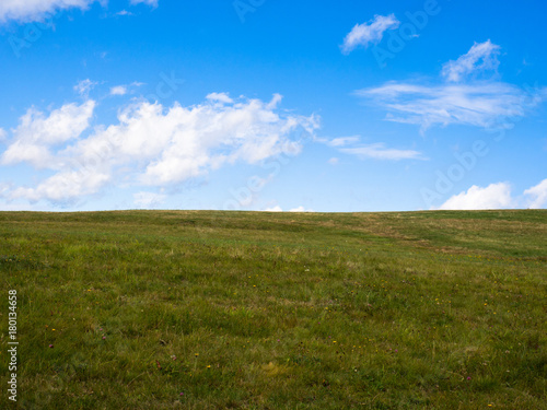 © sleepyhobbit, Fototapeta premium Green meadow and blue sky