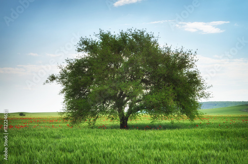 © GIS, Obraz premium Green meadow in mountain and tree.