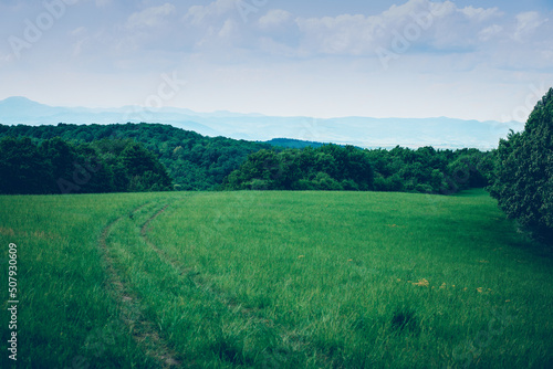© Munka, Fototapeta premium Green meadow on a sunny day.Summer season. High quality photo.