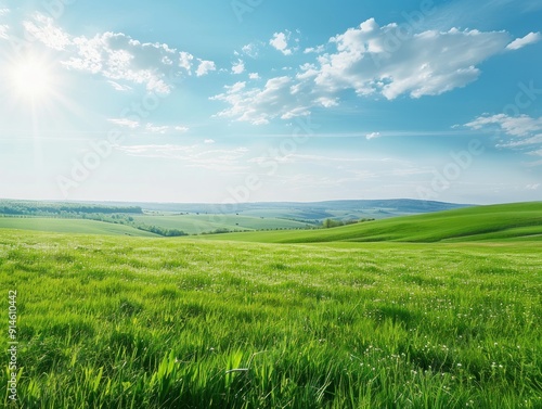 © AR99, Fototapeta premium Green Meadow Under Sunny Sky