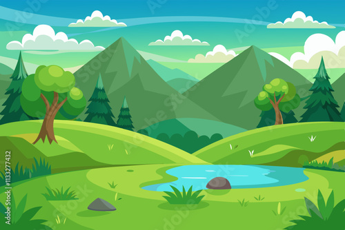© MdShofiqul, Fototapeta premium Green Meadow vector illustration