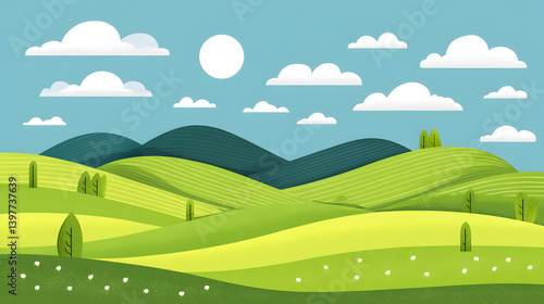 © saypin , Fototapeta premium green meadow with a bright sky and soft mountain backdrop