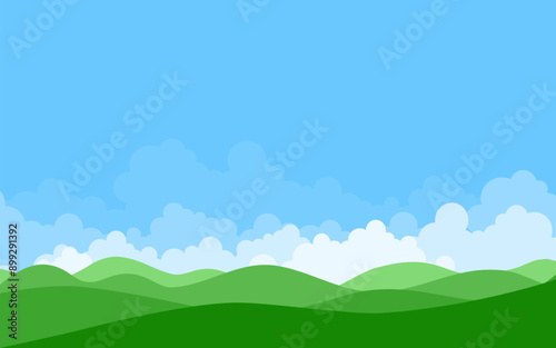 © Aurigae, Obraz premium green meadow with clouds nature background