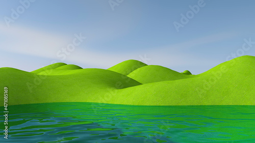 Obraz premium Green meadow with sky background. 3D illustration, 3D rendering