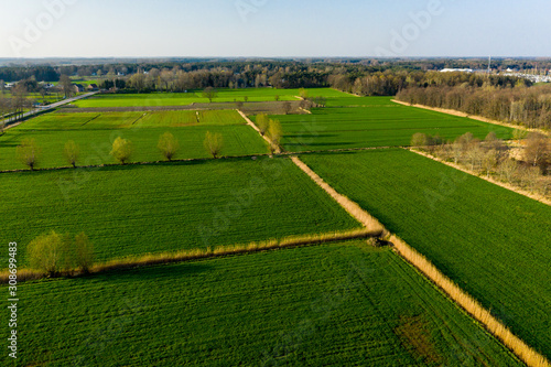 © Catalin, Naklejka premium Green meadows of East Flanders, Belgium - aerial view
