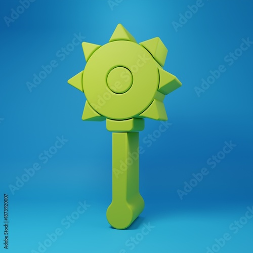 © Kostiantyn, Fototapeta premium Green Medieval chained mace ball icon isolated on blue background. Medieval weapon. Minimalism concept. 3D render illustration